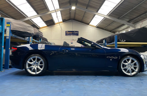 Here at Oyster Cars we are absolutely thrilled to offer for sale this stunning Maserati Grancabrio Sport. This 1 OWNER car is beautifully presented in Metallic Blu Oceano, with full Blu Profondita leather interior, with Blu carpets which are fully protected by a set of Blu Maserati mats.