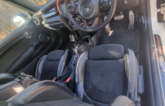 The car has been clearly very well looked after as can be seen by the all round consition of the exterior and interior and the manner in which it drives. Featuring the much improved B48 2.0 litre turbocharged engine, these models produce 189hp which is mated to a 7 speed DCT transmission shift with automatic mode and manual paddle gear option. The car drives smoothly and exactly as you would expect in all aspects. The black 17" alloy wheels are in excellent condition and fitted with Dunlop Sport tyres all round with good tread on all four corners. The interior is a lovely place to be, featuring the extremely confortable John Cooper Works part leather bucket seats with heating and leather steering wheel with red stitching. The media infotainment has all the options inclduing DAB radio, Sat Nav and Bluetooth streaming and all the electric windows, mirrors etc have been tested.